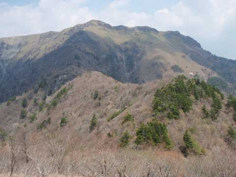 次郎笈 「4.9度 3-4m 西風 晴れ 三嶺方面 もやがかかる。」