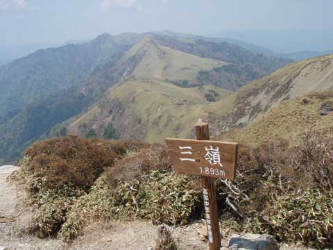 三嶺 「15.1度 0.4m 風弱い 晴れ 剣山 次郎笈 天狗塚 少し霞んで見える。」