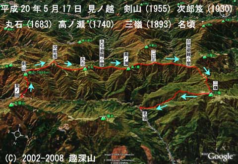 見ノ越 剣山(1955) 次郎笈(1930) 丸石(1683) 高ノ瀬(1740) 三嶺(1893) 名頃