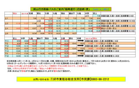 剣山行き路線バスのご案内「臨時運行(迂回路)便」 【H20.4.1運行】PDF 〔46KB〕