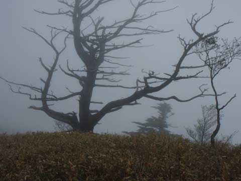天狗塚 「11.5度 10.4m 南風 雨 ガス。何も見えず。」