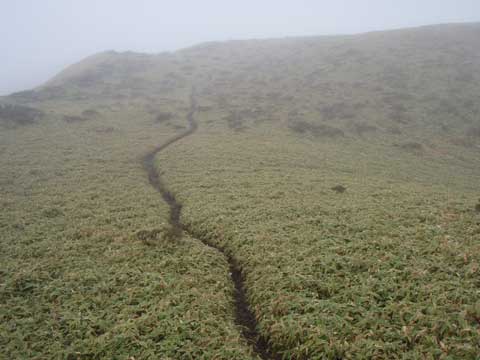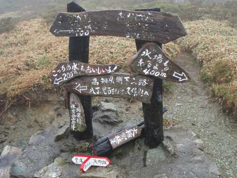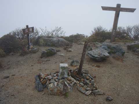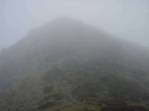 三嶺 「11.5度 6m 南風 雨 ガス 何も見えない。」