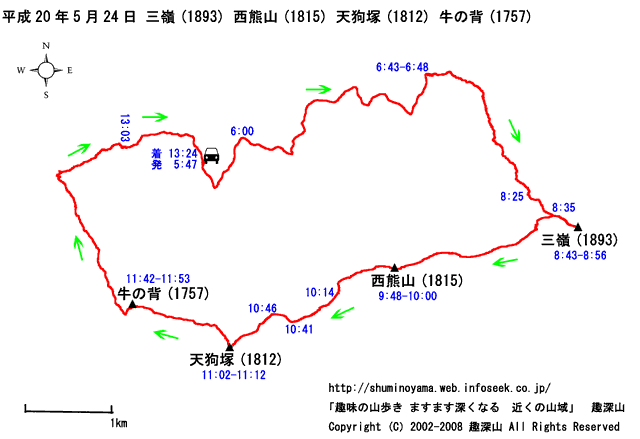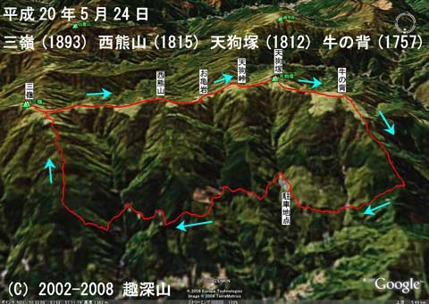 HOME > 山行記録 >三嶺(1893) 西熊山(1815) 天狗塚(1812) 牛ノ背(1757) > 平成20年5月24日