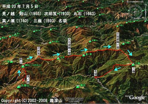 見ノ越 剣山(1955) 次郎笈(1930) 丸石(1683) 高ノ瀬(1740) 三嶺(1893) 名頃