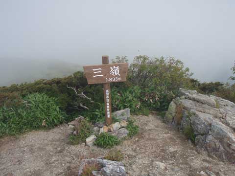 三嶺 「17.3度 3m 南西風 ガス 視界きかず。」その後 一時 部分的に