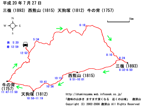HOME > 山行記録 >三嶺(1893) 西熊山(1815) 天狗塚(1812) 牛ノ背(1757) > 平成20年7月27日