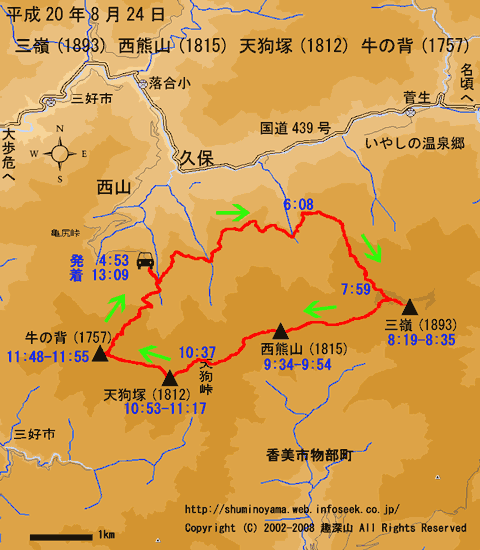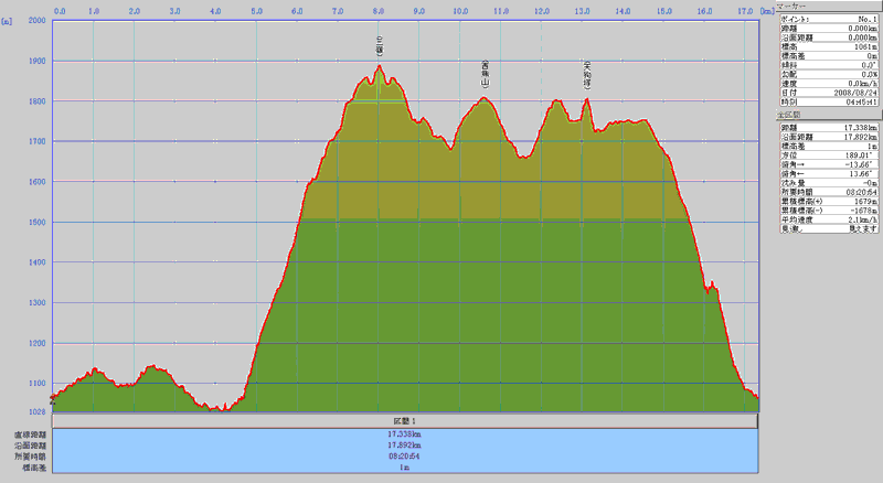 HOME > 山行記録 >三嶺(1893) 西熊山(1815) 天狗塚(1812) 牛ノ背(1757) > 平成20年8月24日