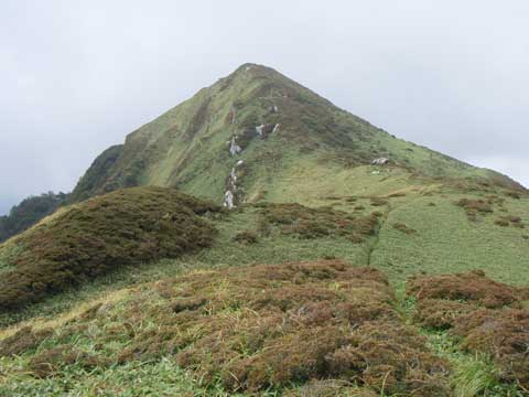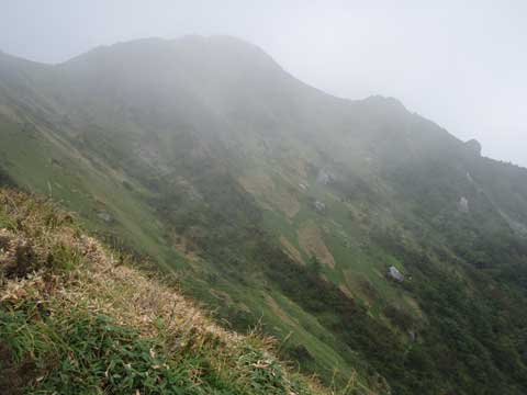 三嶺を振り返る、ササの斑点が大きくなってきたのが気になる。。