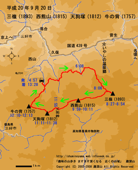 HOME > 山行記録 >三嶺(1893) 西熊山(1815) 天狗塚(1812) 牛ノ背(1757) > 平成20年9月20日