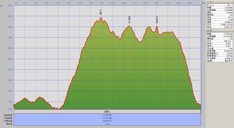 三嶺(1893) 西熊山(1815) 天狗塚(1812) 牛の背(1757)