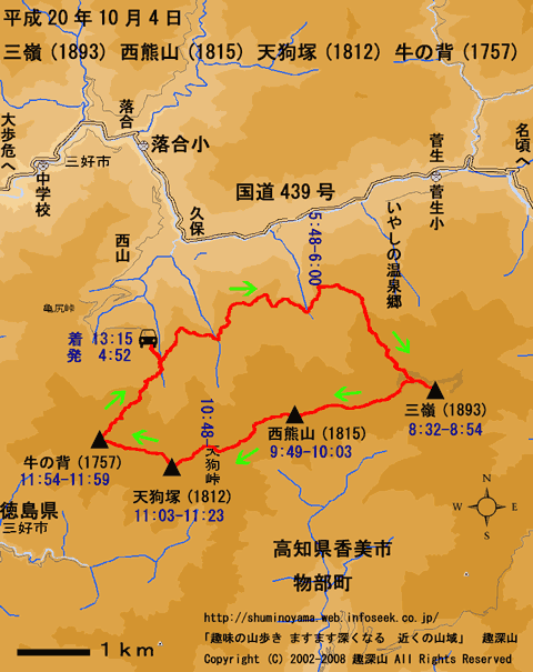 HOME > 山行記録 >三嶺(1893) 西熊山(1815) 天狗塚(1812) 牛ノ背(1757) > 平成20年10月4日