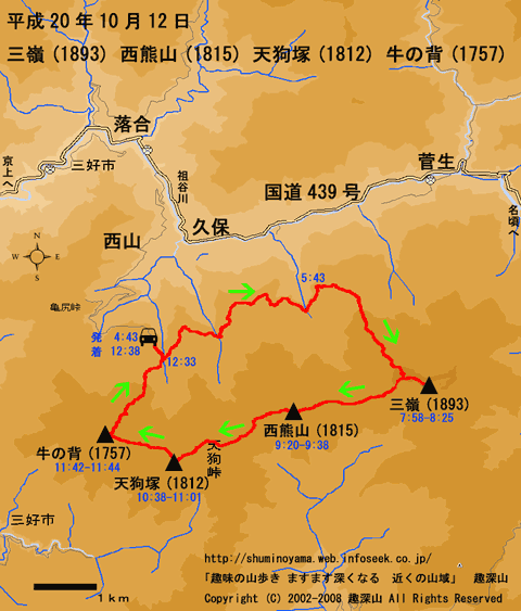 HOME > 山行記録 >三嶺(1893) 西熊山(1815) 天狗塚(1812) 牛ノ背(1757) > 平成20年10月12日