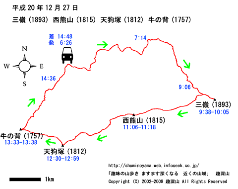 HOME > 山行記録 >三嶺(1893) 西熊山(1815) 天狗塚(1812) 牛ノ背(1757) > 平成20年12月27日