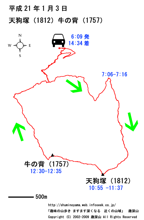 HOME > 山行記録 > 天狗塚(1812) 牛ノ背(1757) > 平成21年1月3日