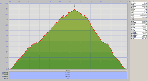 --三嶺ヒュッテ (12:27-12:49) ---1791m標高点 13:05---林業作業小屋跡 14:05---いやしの温泉郷 駐車地点