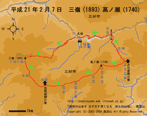 HOME > 山行記録 > 積雪期>三嶺(1893) 高の瀬(1741) > 平成21年2月7日