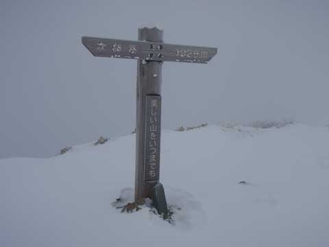 剣山山頂 「マイナス7.4度 西7m ガス。」