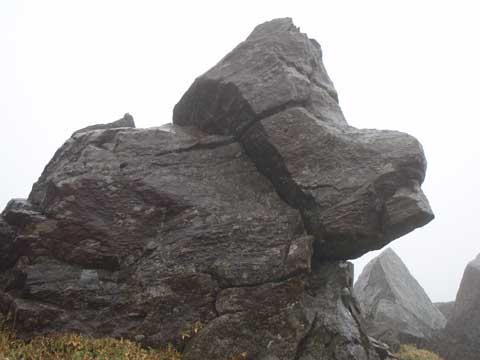 天狗塚 「10.2度 南風 15-20m。風雨 ガス 何も見えず。。」