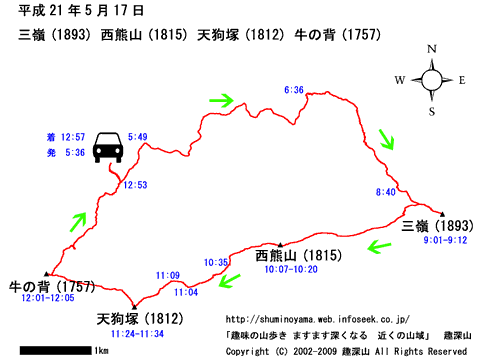 HOME > 山行記録 >三嶺(1893) 西熊山(1815) 天狗塚(1812) 牛ノ背(1757) > 平成21年5月17日