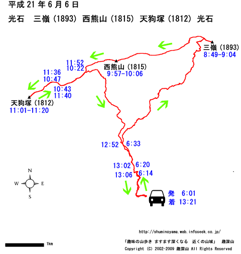 HOME > 山行記録 >光石 三嶺(1893) 西熊山(1815) 天狗塚(1812) 光石> 平成21年6月6日