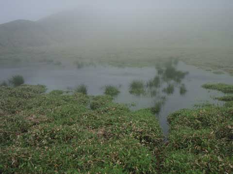 西熊山 「12.2度 南風 2m ガス。何も見えず。」