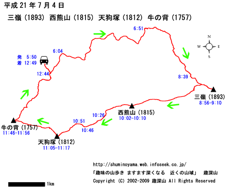 HOME > 山行記録 >三嶺(1893) 西熊山(1815) 天狗塚(1812) 牛ノ背(1757) > 平成21年7月4日