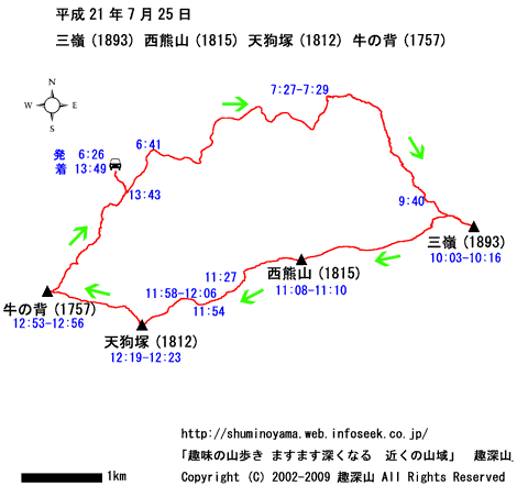 HOME > 山行記録 >三嶺(1893) 西熊山(1815) 天狗塚(1812) 牛ノ背(1757) > 平成21年7月25日