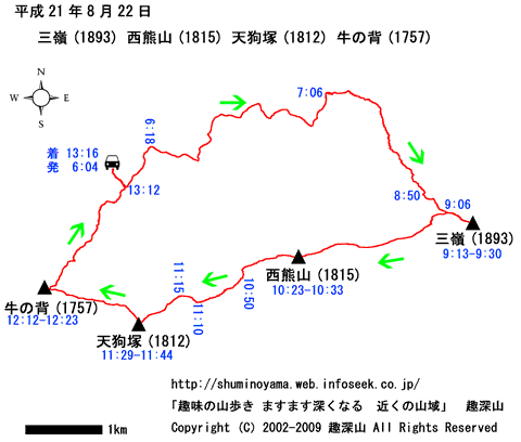 HOME > 山行記録 >三嶺(1893) 西熊山(1815) 天狗塚(1812) 牛ノ背(1757) > 平成21年8月22日