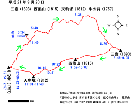 HOME > 山行記録 >三嶺(1893) 西熊山(1815) 天狗塚(1812) 牛ノ背(1757) > 平成21年9月20日