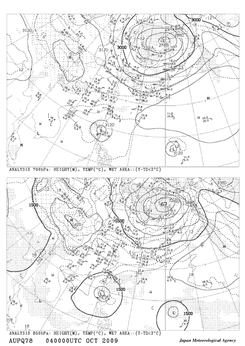 丸石 「9.7度 2m 南風 少し雲があるが 一部には星が見える。剣山 次郎笈は上の方で雲が少しかかるが 高ノ瀬 中東山 石立山 塔の丸 丸笹山は見える。谷間は雲が貯まっている。」