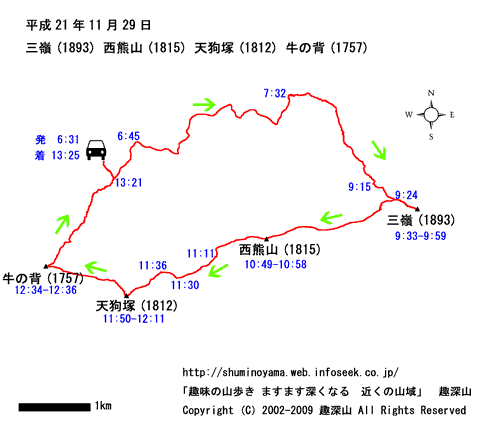 HOME > 山行記録 >三嶺(1893) 西熊山(1815) 天狗塚(1812) 牛ノ背(1757) > 平成21年11月29日