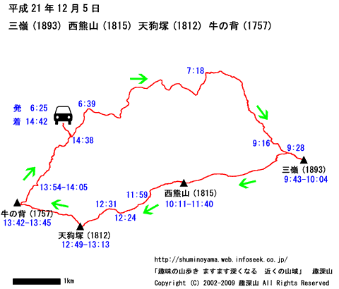 HOME > 山行記録 >三嶺(1893) 西熊山(1815) 天狗塚(1812) 牛ノ背(1757) > 平成21年12月5日