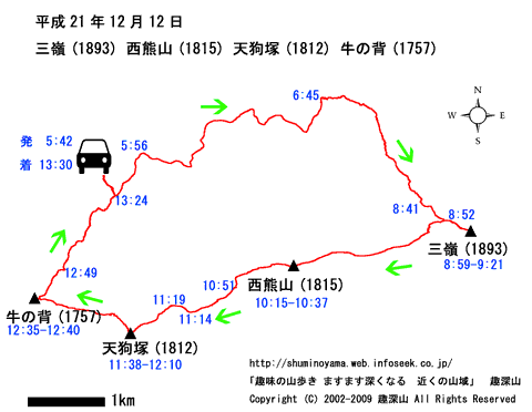 HOME > 山行記録 >三嶺(1893) 西熊山(1815) 天狗塚(1812) 牛ノ背(1757) > 平成21年12月12日
