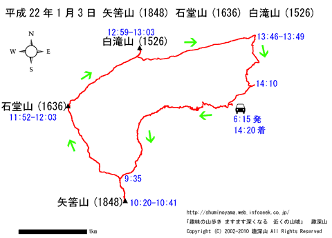 HOME > 山行記録 >矢筈山(1848) 石堂山(1636) 白滝山(1526) > 平成22年1月3日
