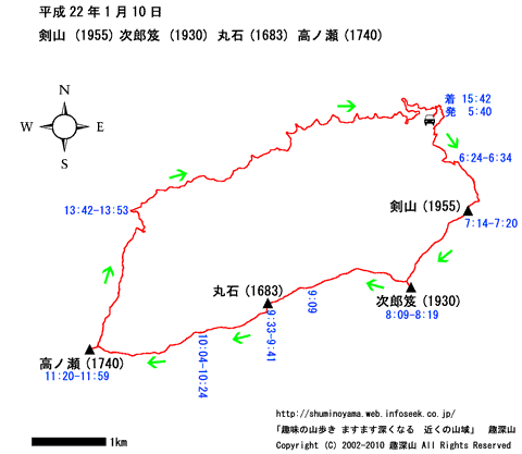 HOME > 山行記録 >剣山 (1955)次郎笈 (1930) 丸石(1683) 高ノ瀬(1740) > 平成22年1月10日
