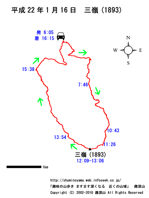 HOME > 山行記録 >三嶺(1893) > 平成22年1月16日