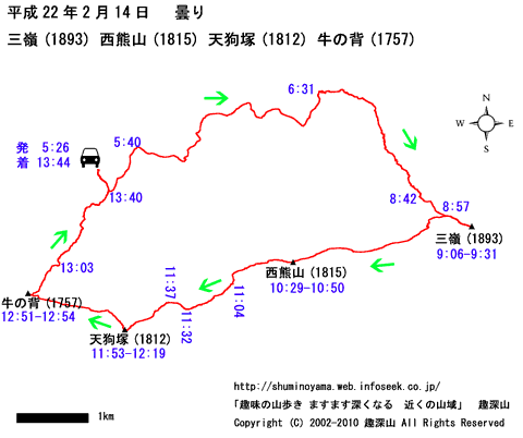 HOME > 山行記録 >三嶺(1893) 西熊山(1815) 天狗塚(1812) 牛の背(1757)> 平成22年2月14日