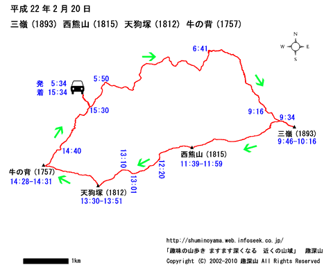 HOME > 山行記録 >三嶺(1893) 西熊山(1815) 天狗塚(1812) 牛の背(1757)> 平成22年2月20日