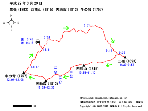HOME > 山行記録 > 三嶺(1893)西熊山(1815) 天狗塚(1812) 牛の背(1757) > 平成22年3月20日