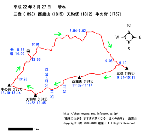 HOME > 山行記録 >三嶺(1893) 西熊山(1815) 天狗塚(1812) 牛の背(1757)> 平成22年3月27日