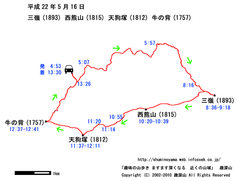 HOME > 山行記録 > 三嶺(1893)西熊山(1815) 天狗塚(1812) 牛の背(1757) > 平成22年5月16日