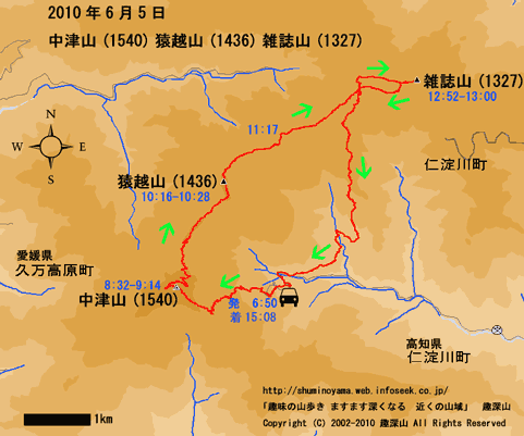 HOME > 山行記録 >中津山(1540)猿越山(1436)雑誌山(1327)>平成22年年6月5日