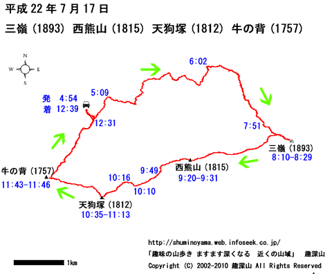HOME > 山行記録 >三嶺(1893) 西熊山(1815) 天狗塚(1812) 牛の背(1757)> 平成22年7月17日