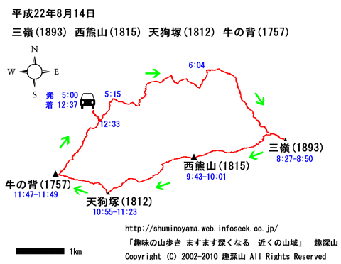 HOME > 山行記録 >三嶺(1893) 西熊山(1815) 天狗塚(1812) 牛の背(1757)> 平成22年8月14日