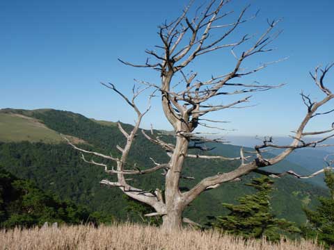 三嶺 「+19.3度 東風 2m 晴れ 剣山 次郎笈 天狗塚 見える。」