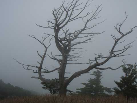 天狗塚 「+15.8度 南風 3m 曇 小雨 ガス なにも見えない」