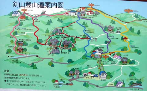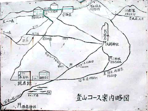 山中で見かける簡単な 案内略図は初めての人にも 分かりやすく 山頂までの道順を 示すことができる。