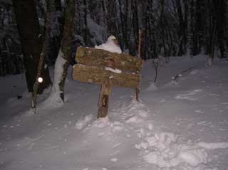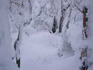 積雪量変化 2004年天狗峠綱付森分岐標識 1476m地点 林道へ降り立つ