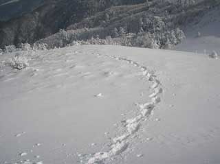 天狗峠一体は 多くのトレース痕があった。いくつかのパーティーが入っていたようだ。