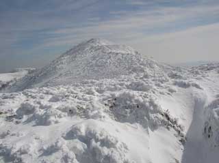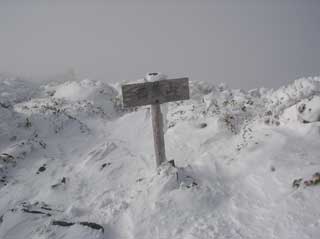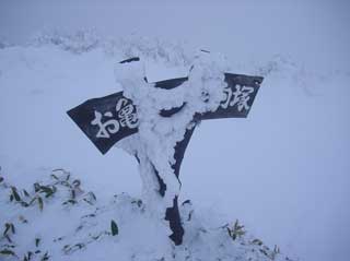 三嶺山頂 「-6.1度 9m 北西の風が強い。曇り。